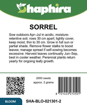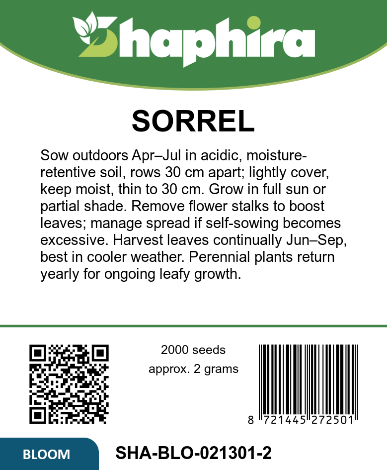 Add a distinctive, tangy note to your kitchen garden with sorrel seeds of the broad-leaf culinary type. These Rumex acetosa seeds produce compact perennial clumps, reaching around 20β30 cm in height, ideal for borders, raised beds, and mixed vegetable herb plots. As a reliable leafy herb, sorrel fits perfectly among other vegetable herb seeds and is well suited to gardeners who enjoy harvesting fresh greens over a long season. The broad leaves offer generous yields, making these sorrel seeds for planting a practical choice for both beginner and experienced growers.