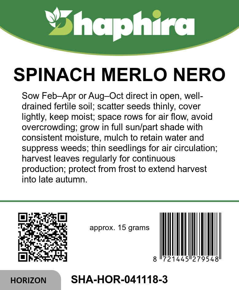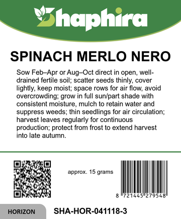 Merlo Nero spinach seeds offer an extended harvest period with sowing possible from early spring through late autumn. These sweet flavorful spinach seeds perform well in different climates and are suited for outdoor cultivation, making them a valuable addition to any vegetable seeds collection. With the ability to sow from February to April and again from August to October, gardeners can enjoy fresh spinach leaves from March through December. This adaptability makes Merlo Nero spinach seeds ideal for those focused on continuous supply and sustainable home gardening.