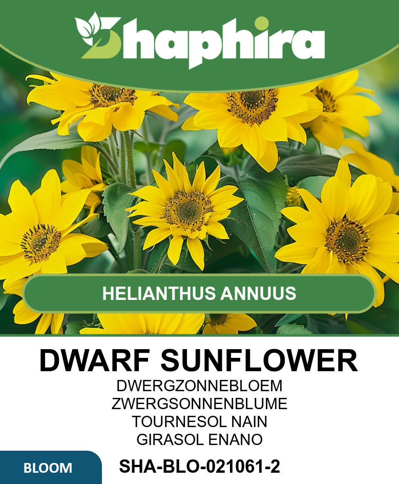 Ensure your dwarf sunflowers receive plenty of sunlight to encourage vibrant blooms from July through October. Maintain consistent moisture in the soil, avoiding waterlogging to keep roots healthy. Applying a balanced fertilizer during the growing season supports strong stems and bright flowers. Regularly remove faded blooms to promote continuous flowering and prevent disease. This compact variety thrives in well-drained soil and benefits from gentle air circulation, especially when grown in containers or borders. Protect plants from strong winds to preserve their neat, upright habit and enjoy cheerful, sunny blossoms all season long.