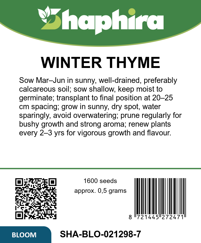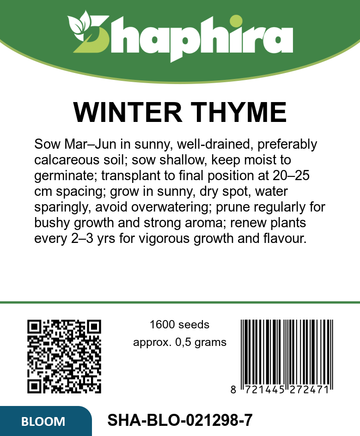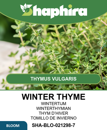 Hardy true winter thyme seeds forming compact, evergreen plants with aromatic leaves and bee-friendly blooms.