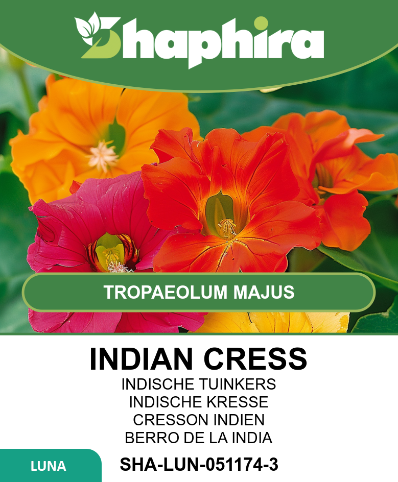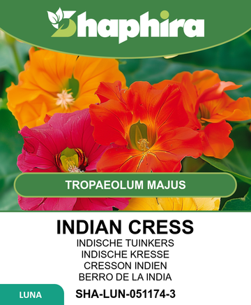 Sow Indian Cress seeds directly outdoors from mid-March to mid-June in a sunny, well-drained spot. Space seeds about 20-30 cm apart to allow room for climbing or spreading as ground cover. Plant seeds 1-2 cm deep and cover lightly with soil. Support climbing varieties with trellises or fences to encourage upward growth. Avoid over-fertilizing to prevent excessive foliage, which can reduce flowering. Water gently after sowing to keep the soil moist until seedlings emerge. With proper placement and care during planting, these vibrant climbers will thrive beautifully in your garden.