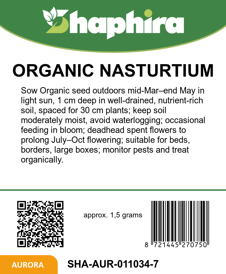 Bring rich color and structure to beds, borders, and containers with nasturtium empress of india seeds. This classic heritage variety, known as Tropaeolum majus, forms neat, compact mounds around 30 cm tall, ideal for small gardens and patio planters. The deep red blooms stand out beautifully against dark green foliage, creating a striking display from midsummer into autumn. As organic nasturtium seeds, they fit perfectly into natural garden designs, cottage-style beds, and family-friendly outdoor spaces where bold color and easy-care plants are a priority.