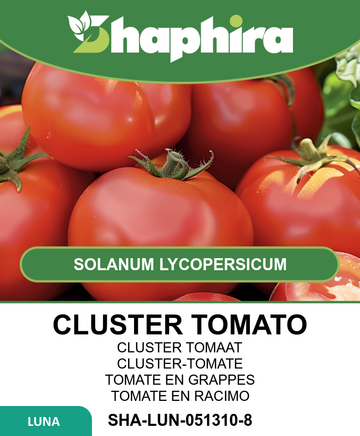 Sow cluster tomato seeds Serrat F1 indoors from late February to March at 20ΒΊC in seed trays. After seedlings develop, transplant them into a greenhouse or pots. Plant out with a spacing of 80 cm by 40 cm in a sunny location. Support plants with stakes and tie them securely. When 3 to 4 flower clusters have formed, pinch out the top to encourage fruiting. Regularly remove side shoots (suckers) from leaf axils while young to maintain healthy growth. This method ensures strong plants producing firm, flavorful tomato clusters.