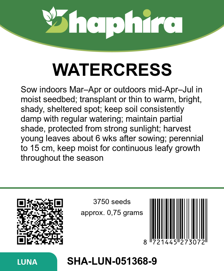 Watercress thrives best in moist, shady environments with warm, bright light. Sow seeds indoors from March to April or directly outdoors from May to June in a well-watered seedbed. Transplant seedlings carefully to a consistently damp, shaded spot for optimal growth. Harvest young leaves about six weeks after sowing to enjoy their fresh, peppery flavor and metabolism-boosting benefits. Regular watering encourages lush, vigorous plants. This perennial herb is perfect for adding zest to salads, quark, and meat dishes, providing flavorful greens throughout the growing season from May to August.