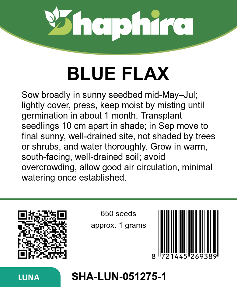 Blue flax thrives in sunny, warm locations with well-drained soil, making it perfect for south-facing gardens. It prefers to be planted outside the shade of trees and shrubs to ensure abundant flowering. Once established, it requires minimal watering and is drought tolerant. The slender leaves and delicate blue flowers create an attractive border or naturalizing effect. To maintain its charm, avoid overcrowding and allow good air circulation. The decorative seed pods add interest even after blooming, enhancing garden appeal throughout the season.