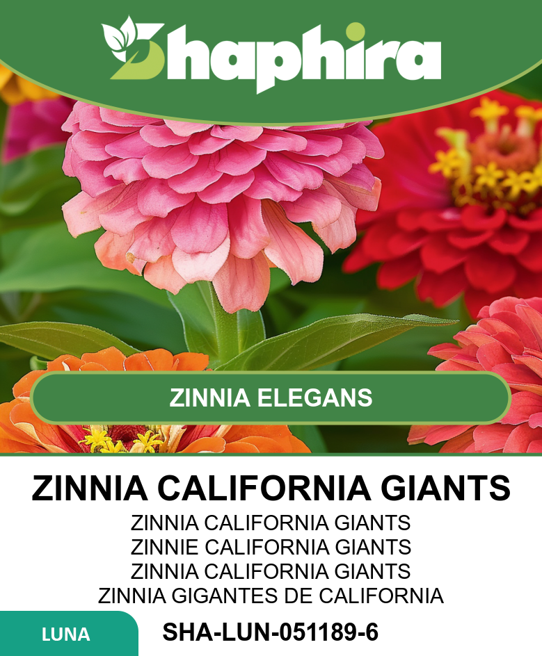 Zinnia California Giants flourish in warm, sunny spots, where their large double blooms can fully develop. Regular watering keeps the soil moist but well-drained, preventing root rot while encouraging vibrant growth. Deadhead spent flowers to promote continuous blooming from summer through early autumn. These annual plants reach about 75 cm tall, making them perfect for adding height and color to garden beds or floral arrangements. Protect from strong winds to maintain sturdy stems and enjoy a long-lasting display of stunning, colorful blossoms throughout the season.