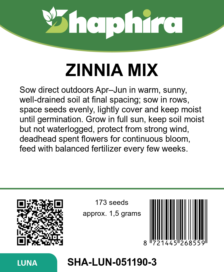 Zinnia Chrysanthemum-like seeds thrive in warm, sunny locations with well-drained soil. They perform best when sown directly outdoors and placed in spots that receive full sunlight daily.
