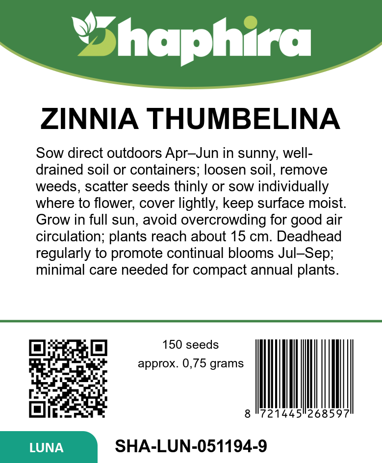 Sow Zinnia Thumbelina seeds directly outdoors from April to June in a sunny spot to ensure vibrant pastel blooms from July to September. Avoid transplanting, as these delicate plants prefer growing in their final location. Ideal for pots, balcony boxes, and small garden spaces, they thrive with regular watering but well-drained soil. Pinching back young stems can encourage bushier growth and more flowers. Their compact height of 15 cm makes them perfect for adding cheerful color without overwhelming limited spaces, creating a charming, low-maintenance summer display.
