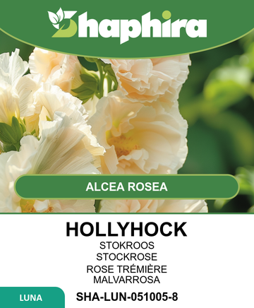 They produce elegant double flowers of Alcea rosea, commonly known as hollyhocks, which grow up to 80 cm tall.