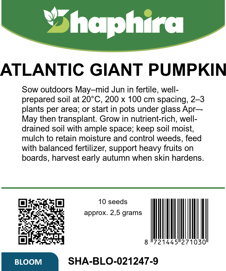 Discover the extraordinary potential of Atlantic Giant pumpkin seeds, a prized choice for gardeners seeking a large pumpkin variety with impressive yields. This cultivar, Cucurbita maxima, is renowned worldwide for producing massive pumpkins, with fruits that can exceed 100 kg when grown under optimal conditions. These giant pumpkin seeds outdoor enthusiasts favor are ideal for creating sprawling pumpkin vines that require ample space and nutrient-rich soil. The plants develop extensive foliage and long vines, making them a captivating addition to any autumn harvest pumpkins collection.