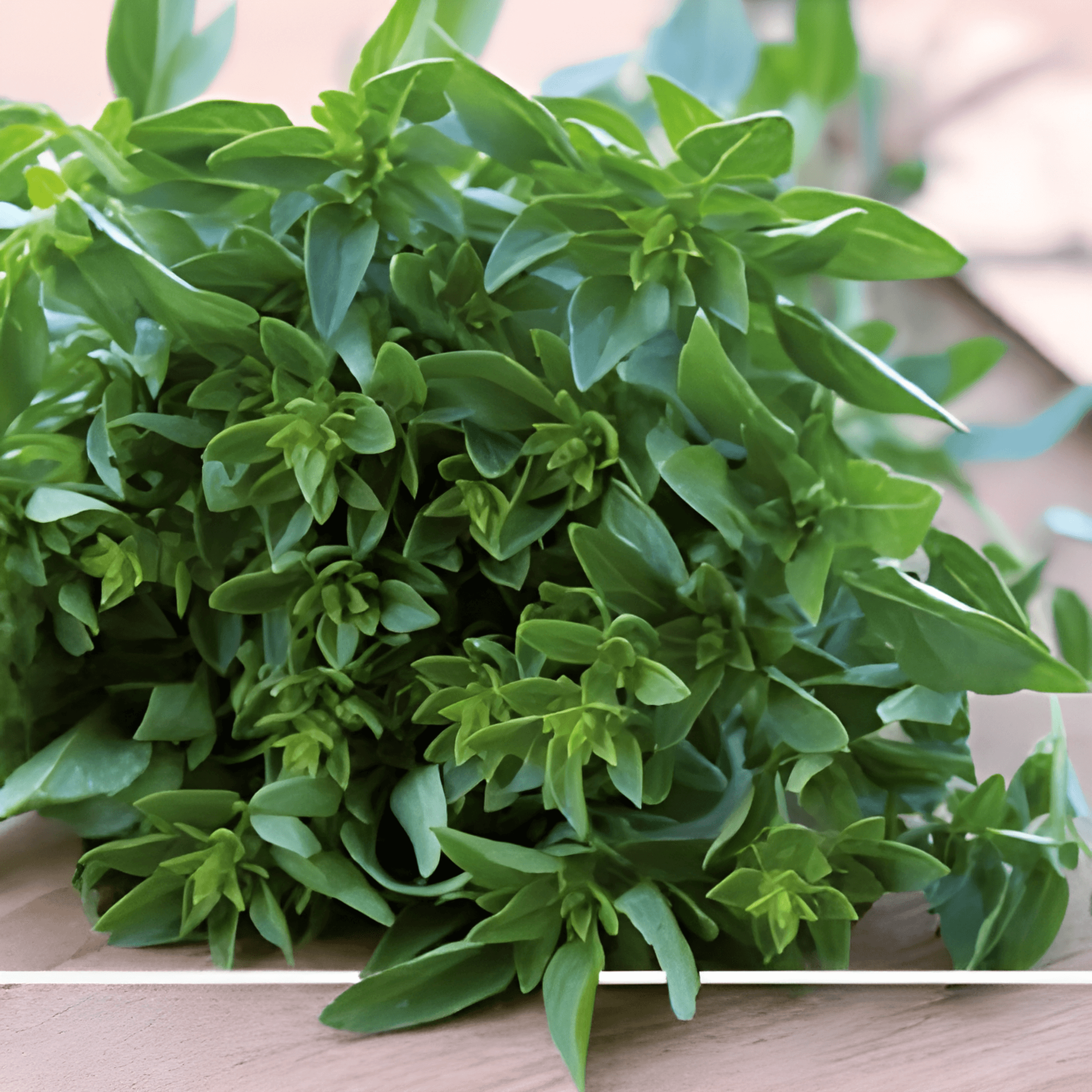 Compact bush basil seeds ideal for flavorful culinary herbs in pots and small gardens.