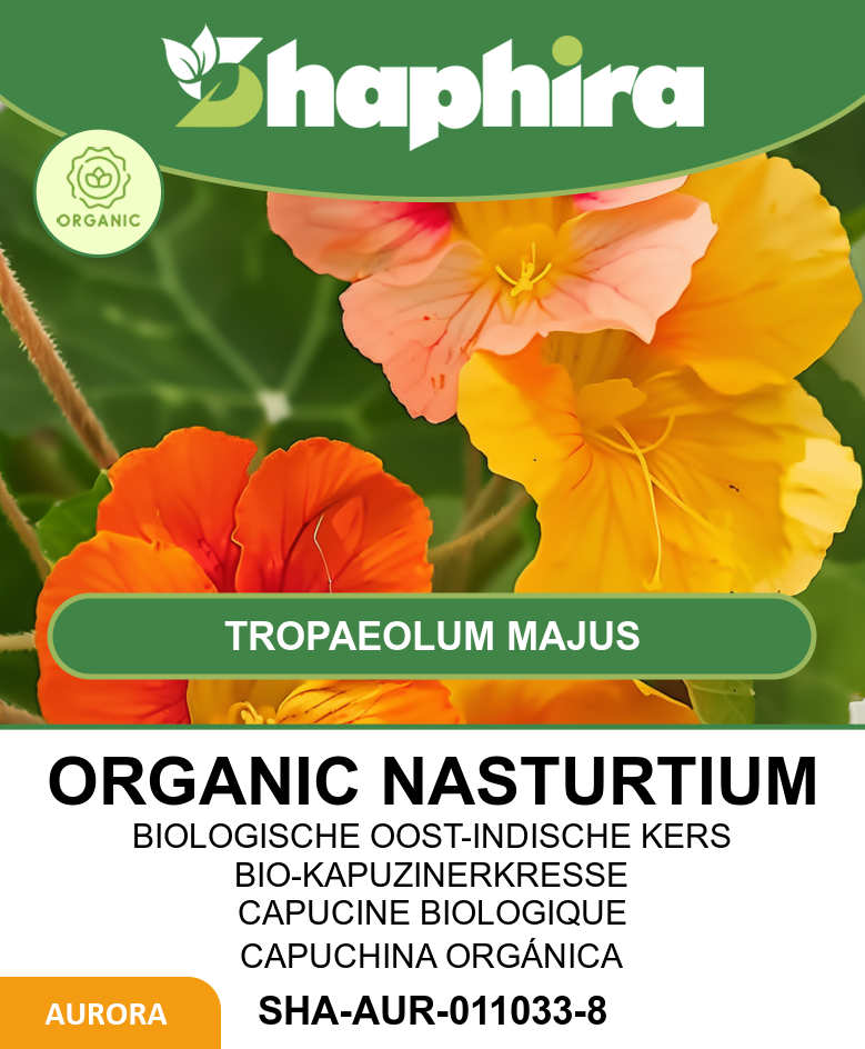 Discover the charm of biological Tropaeolum seeds with these organically grown Tropaeolum majus varieties, perfect for adding color and structure to your garden. These climbing annual plants feature striking single-flowered nasturtium blossoms in a range of beautiful colors. Reaching heights up to 300 cm, they serve as excellent natural garden climbers and create an attractive garden ground cover. Their vibrant summer blooming flowers enhance any outdoor space from July through October, making them a standout choice for gardeners seeking organic nasturtium seeds that combine beauty with eco-friendly cultivation.
