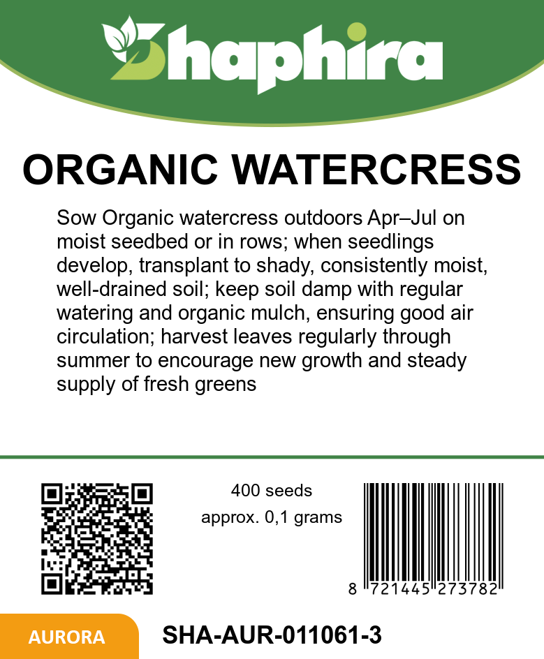 Organic watercress seeds for moist soil, perfect for fresh, spicy salad greens.