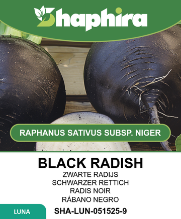 Frost-hardy Black Winter Round Radish seeds with crisp white flesh for cold seasons.