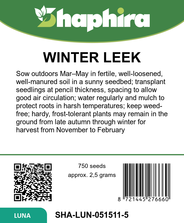 These leek seeds for cold weather perform best when sown outdoors from March to May in well-loosened, well-manured soil. Their blue-green leaves add a vibrant touch to any vegetable garden, while their resilience makes them an excellent choice for spring leek sowing and winter cultivation. The blue-green winter leek seeds yield robust plants that tolerate frost, making them a valuable addition to any collection of hardy vegetable seeds focused on winter and early spring harvests.