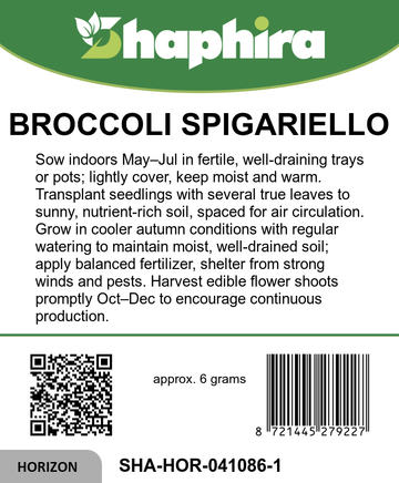 Broccoli Spigariello thrives when sown indoors from May to July, ensuring a vibrant autumn harvest between October and December. For best results, keep the soil moist and well-drained, providing ample sunlight to promote healthy growth. This fast-growing vegetable benefits from regular harvesting of its tender flower shoots, which encourages continuous production. Its unique sweet flavor pairs wonderfully with Italian dishes or can be simply cooked or fried as a tasty side. Ideal for gardeners seeking a nutritious and versatile addition to seasonal vegetable beds, it adds both charm and flavor to your garden.