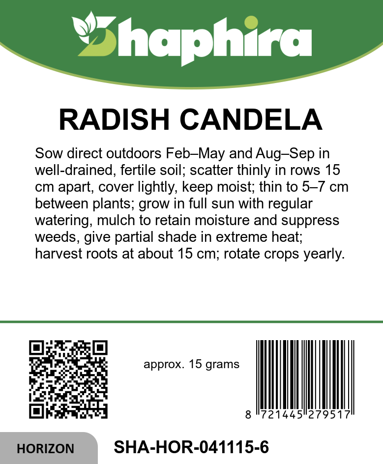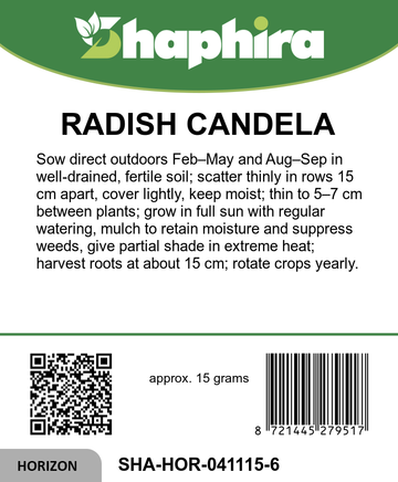 Candela di fuoco radish is valued for its crisp texture and pleasantly mild, fresh taste. The white flesh radish interior stays firm and crunchy, adding a decorative touch to salads, snacks, and vegetable platters. This open pollinated radish offers generous harvest periods, with outdoor sowing possible from late winter into late summer, and picking continuing well into autumn. The long red candela di fuoco radish fits perfectly in rows, containers, and raised beds, giving gardeners a reliable summer radish for garden spaces of all sizes. Combine this Italian radish variety with other elongated radish roots to create an attractive, colorful display straight from your own plot.