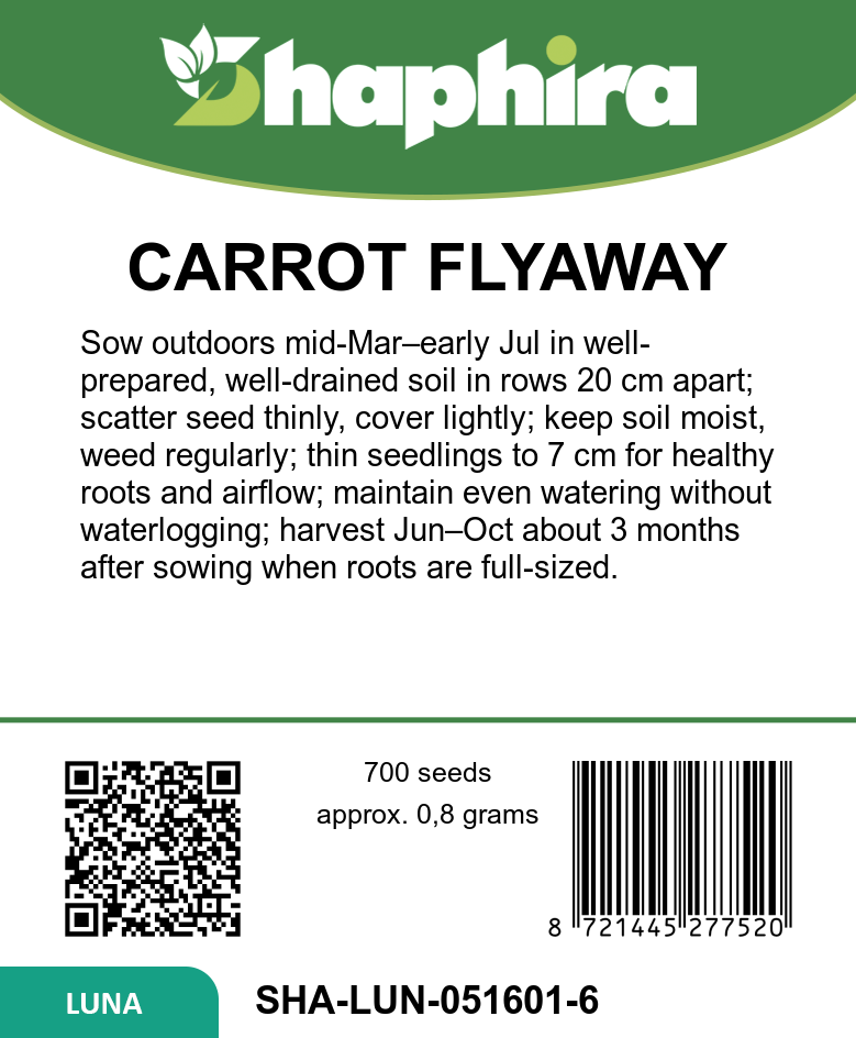 Carrot Flyaway F1 seeds are a reliable choice for gardeners seeking a productive Nantes type carrot with uniform roots and excellent flavour. This summer carrot variety, botanically known as Daucus carota, forms smooth, cylindrical roots with a rich orange colour and fine texture. As a maincrop carrot, it fits perfectly into vegetable plots where consistent growth and attractive roots are important. These carrot flyaway F1 seeds nantes perform well in open ground and are suitable for a long harvesting period from early summer into autumn.