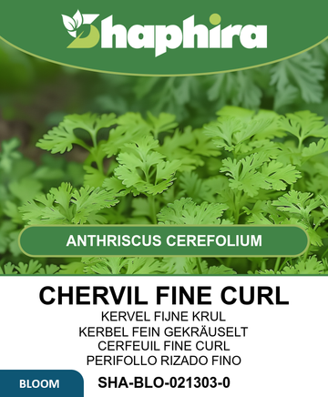 The Fine Curl variety of chervil produces beautifully finely divided leaves with a delicate texture, growing to 40-60 cm tall. It offers a vibrant flavor that enhances many dishes while adding visual appeal to your herb garden.