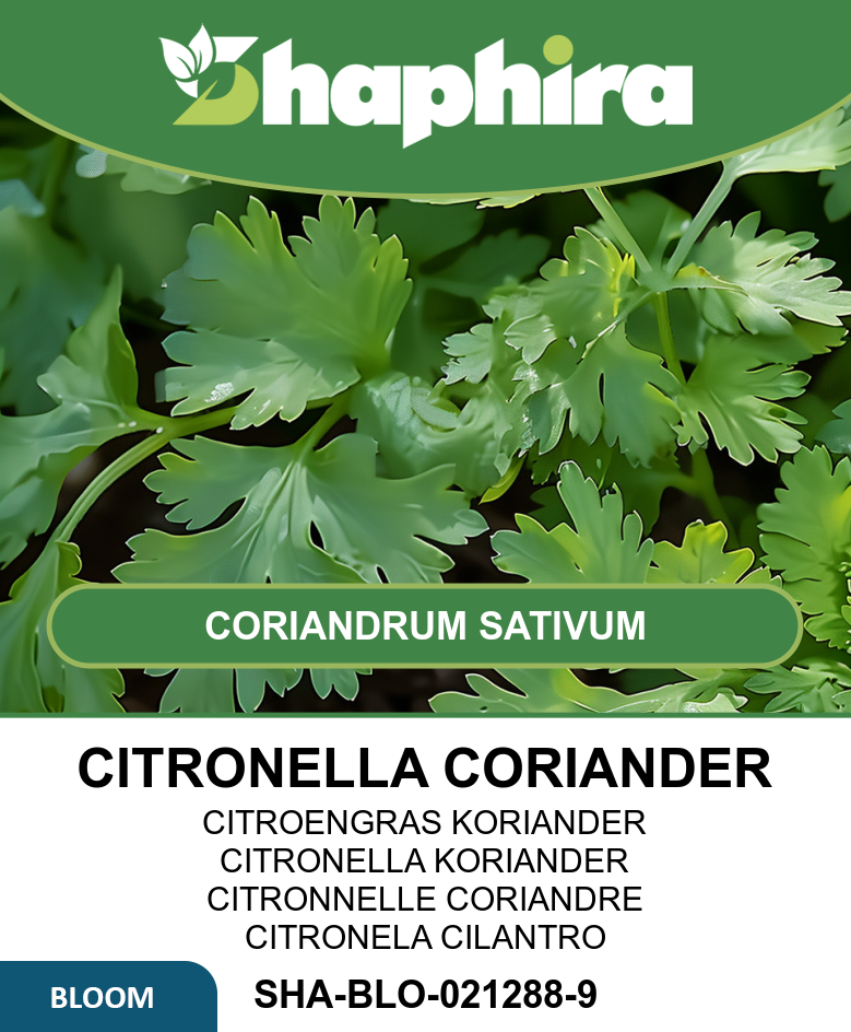 Citronella coriander flourishes best in sunny locations with well-moisturized soil. It grows to about 40 cm tall and develops pointed leaves with a fresh, citrus aroma. Flowering occurs in midsummer, and seed umbels ripen unevenly. Harvest seeds when they emit a lemon-like scent, allowing them to dry on a flat surface to ease collection. This herb adds a bright, zesty flavor to salads and oriental dishes, making it a delightful addition to any culinary herb garden. Regular watering and ample sunlight ensure vibrant growth and aromatic leaves throughout the season.