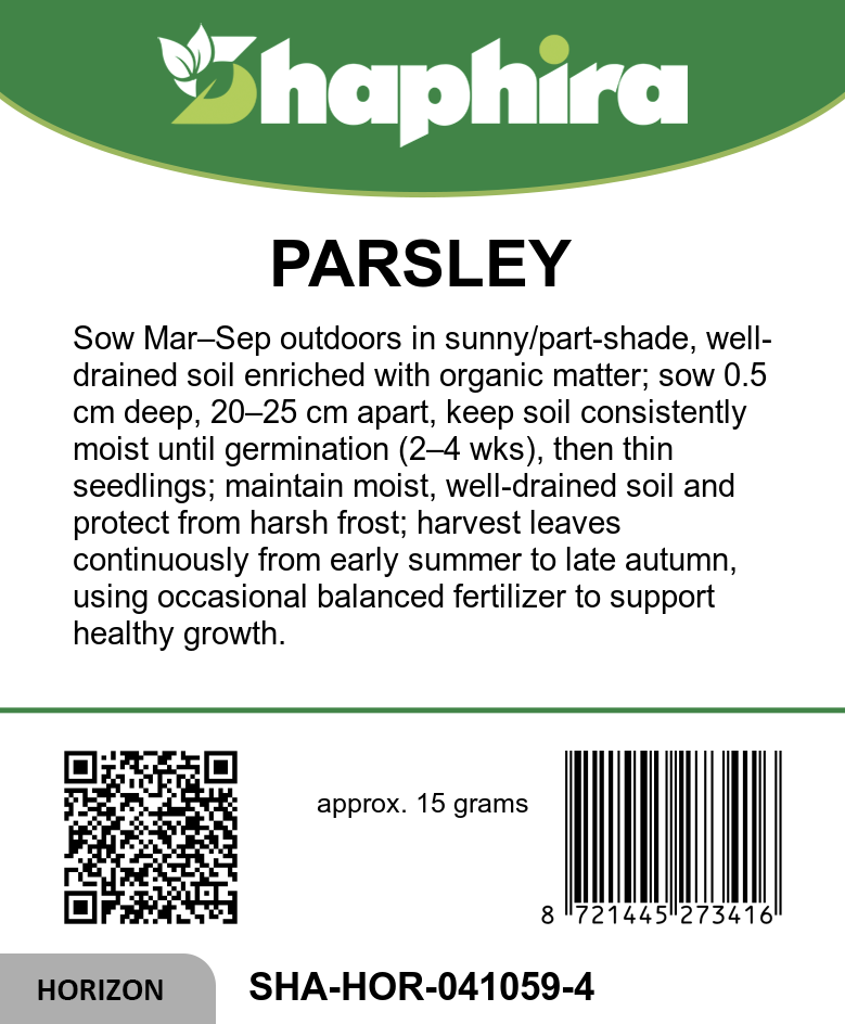 Cold-tolerant common parsley with aromatic leaves for fresh, versatile culinary use.