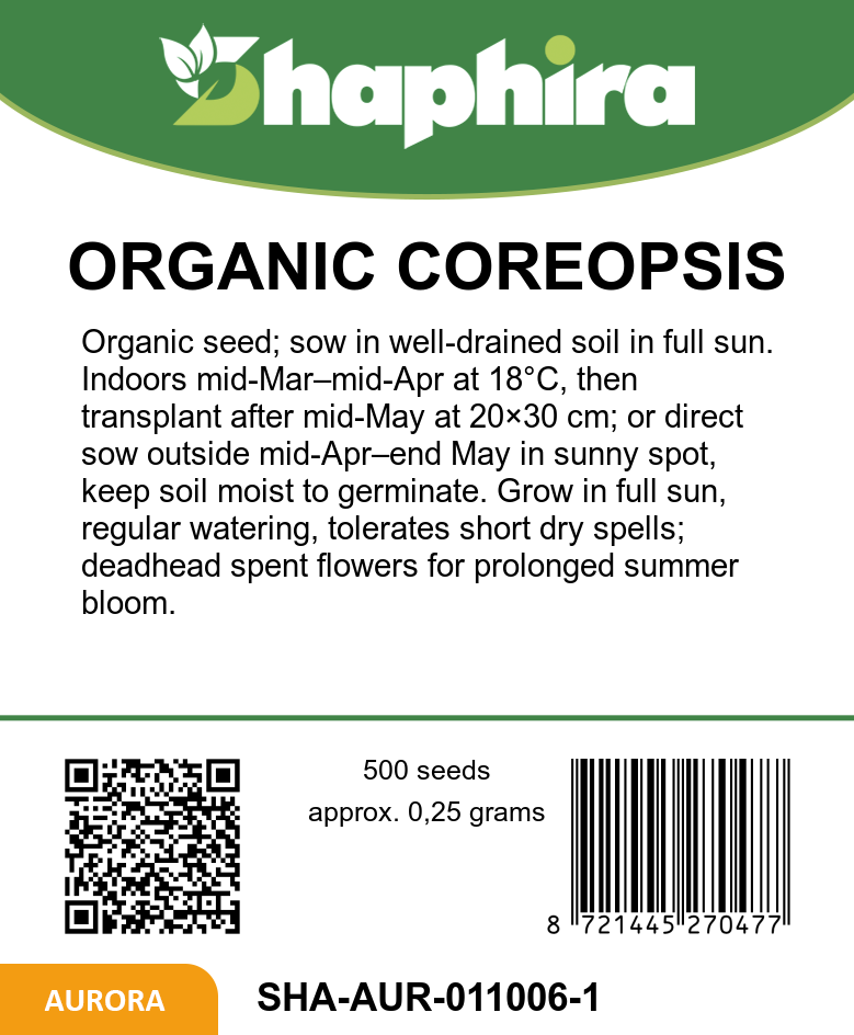Sow Coreopsis tinctoria seeds from mid-March to mid-April indoors or from mid-April to May outdoors for best results. Maintain a germination temperature around 18Β°C to encourage healthy sprouting. Transplant seedlings after mid-May with spacing of 20x30 cm to allow room for growth. These vibrant flowers thrive in sunny locations and reach heights of 75-100 cm, offering excellent color and structure for borders or cutting gardens. Regular watering and well-drained soil will support prolific blooming throughout summer, attracting bees and enhancing your gardenβs ecological balance.