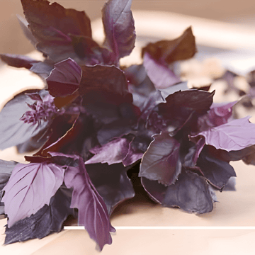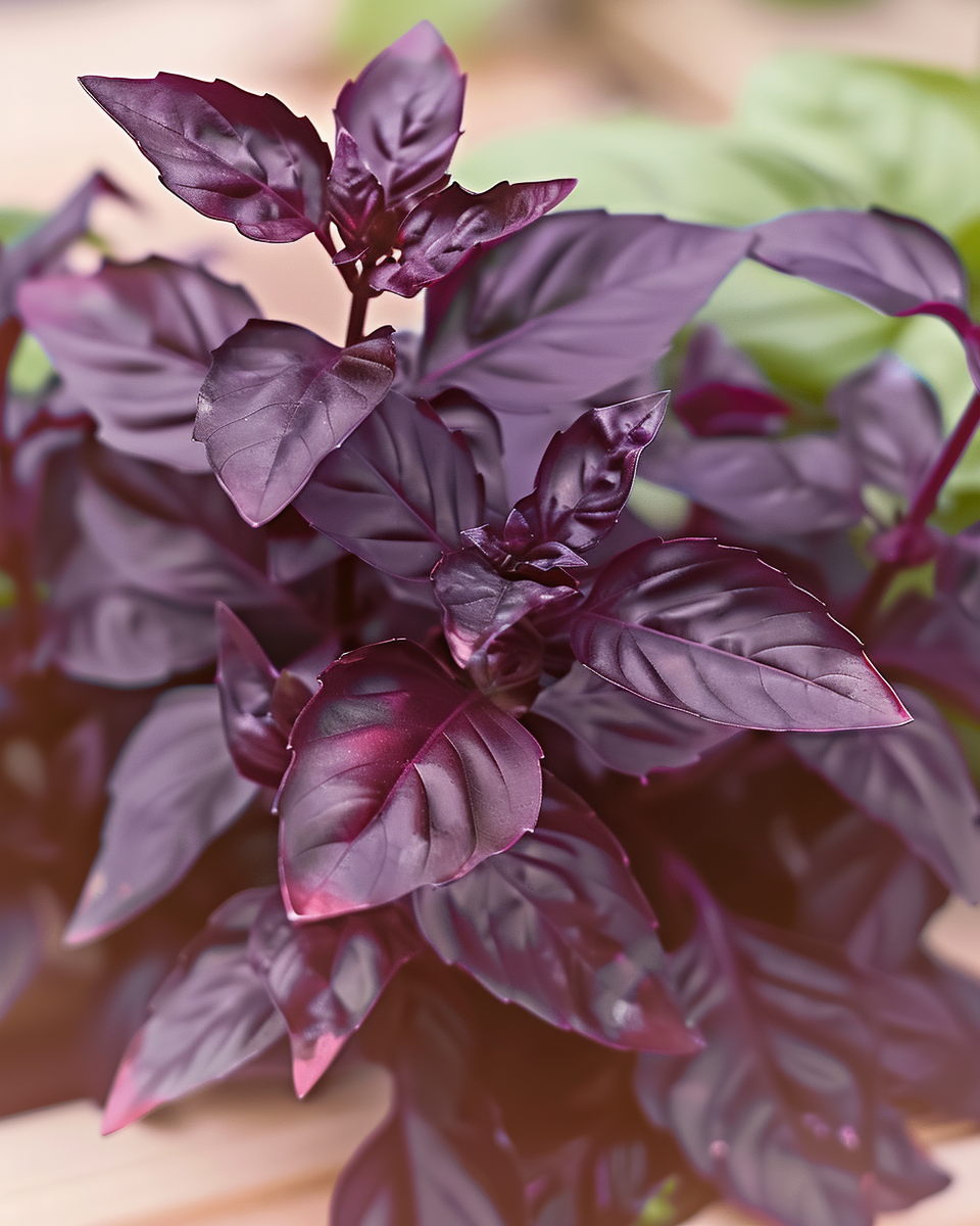 Dark Opal Basil seeds with spicy flavor and striking dark red leaves for gardens.