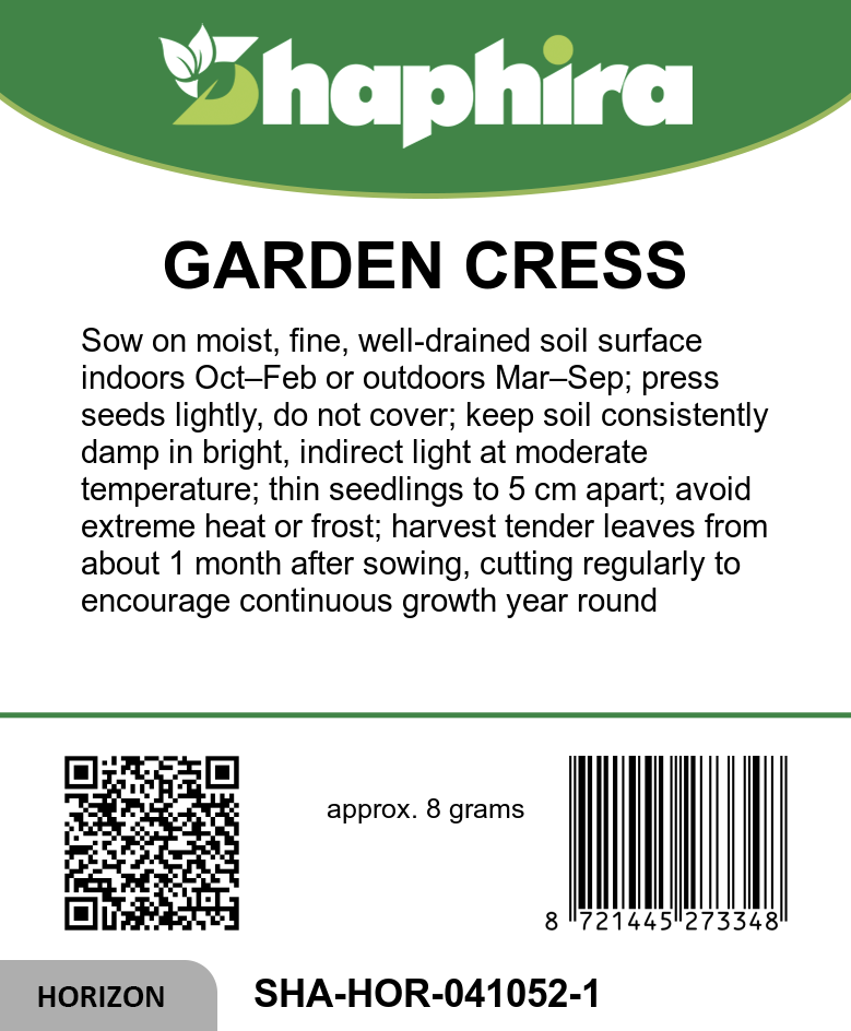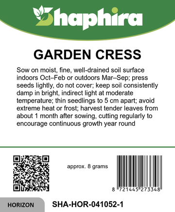 Garden cress thrives in a variety of conditions, making it perfect for year-round cultivation indoors or outdoors. It prefers a well-drained, moist soil and benefits from regular watering to keep the soil consistently damp. Place it in a bright location with indirect sunlight for optimal growth. Maintain a moderate temperature, avoiding extreme heat or frost. Regular harvesting of the tender leaves encourages continuous growth and ensures fresh, spicy-aromatic greens. This low-maintenance herb is ideal for adding a flavorful punch to salads and dishes while brightening any indoor herb garden.