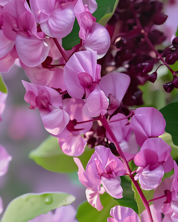 Provide a sunny location with well-drained soil to encourage vigorous growth and vibrant blooms. Regular watering keeps the soil moist but not waterlogged, supporting healthy foliage and flower development. Fertilize moderately to promote lush leaves and abundant flowering clusters. Support climbing stems with trellises or structures to showcase their natural vertical growth habit. Monitor for pests and remove any damaged foliage to maintain plant health. These vines thrive in warm conditions, rewarding you with striking lilac-pink flowers and elegant pods throughout summer.