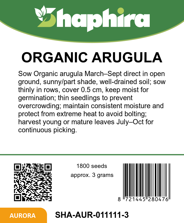 Discover the vibrant flavor of organic arugula seeds (Eruca sativa), prized for their spicy and nutty taste that enhances any salad. These fast-growing vegetable seeds are ideal for open ground cultivation, producing edible leafy plants that reach about 30cm in height. Sowing can be done broadly or in rows outdoors from spring through autumn, making them perfect for continuous harvests from July to October. Their quick development and distinctive flavor profile make them a favorite among gardeners seeking spicy leafy greens and nutty salad greens to enrich their bio garden seeds collection.