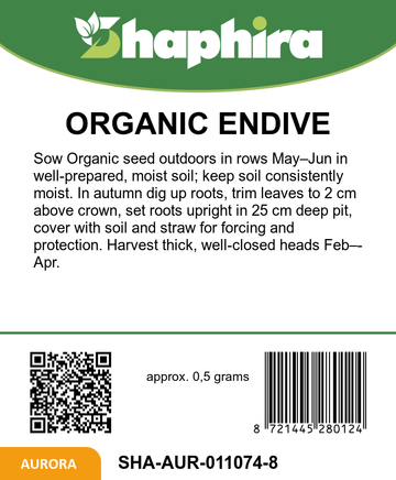 Sow the organic Belgian endive seeds directly outdoors in rows from May to June. Choose a well-prepared, moist soil to ensure successful germination. In autumn, carefully dig up the roots and trim the leaves to about 2 cm above the crown. Place the roots upright in a 25 cm deep pit, then cover them with soil and straw to encourage proper development. This traditional method supports the formation of thick, well-closed heads and prepares the plants for a winter harvest from February to April.
