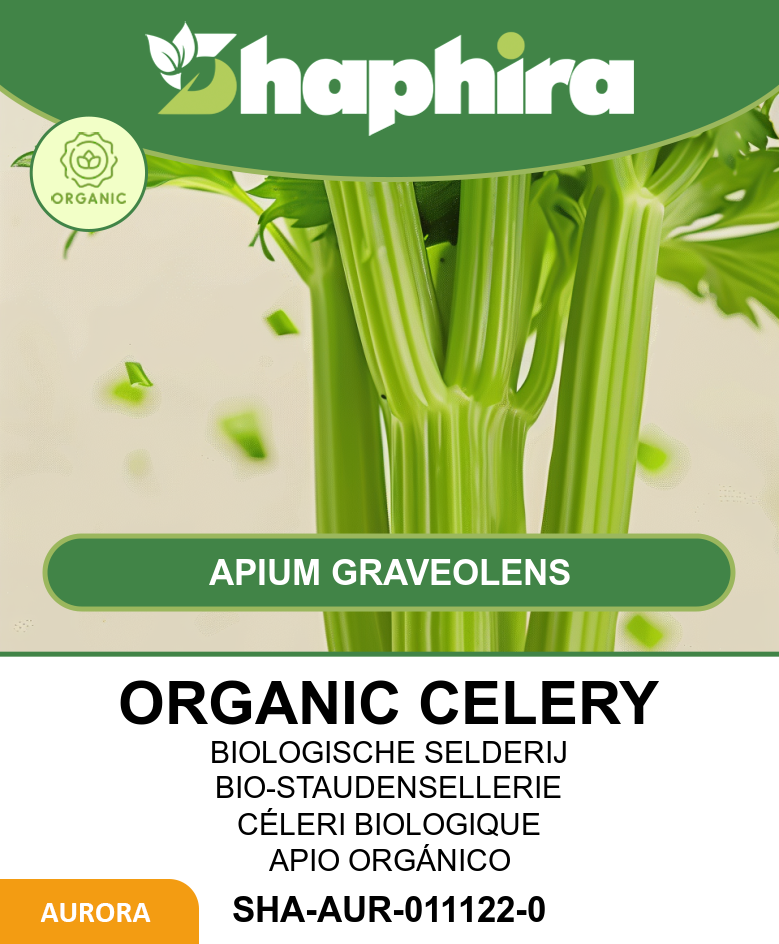 This product contains organic celery seeds of the tall Utah 52/70 variety, known for its crisp aromatic stalks and vigorous growth up to 100 cm tall.