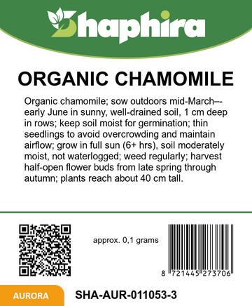 These chamomile herb seeds organic are perfect chamomile seeds for outdoor sowing from March to June, giving a long harvest window from May to October. The compact growth makes them easy to fit into smaller spaces, edging paths or mixing into existing herb beds. As organic chamomile tea plant seeds, they are often chosen by gardeners who enjoy harvesting their own dried flower heads. Use these organic chamomile seeds for tea or simply appreciate their ornamental value and pollinator-friendly blooms. With organic chamomile seeds for garden projects, you can enjoy a reliable annual chamomile garden herb that contributes both beauty and aroma at a modest 40 cm height.