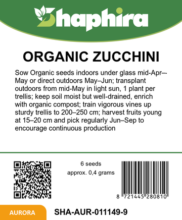Sow organic climbing zucchini seeds indoors under glass from mid-April to May. Once seedlings develop, prick them out into pots and plant outside from mid-May. Alternatively, sow directly outdoors between May and June, then transplant as needed in June. Choose a location with light sun exposure and provide a trellis to support vigorous upward growth. Plant spacing ensures healthy development and easy harvesting. Harvest zucchinis young at 15-20 cm to encourage continuous fruit production throughout summer, enjoying a plentiful and tasty yield while maximizing vertical garden space.