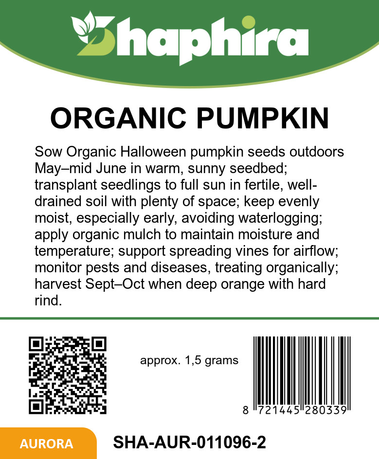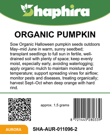 These outdoor pumpkin growing seeds are well suited to garden beds or plots where they can develop sturdy vines and richly colored fruits from late summer into early autumn. As classic halloween pumpkin seeds for carving, the mature pumpkins are easy to hollow out and shape into expressive faces or patterns; place a light inside to transform them into eye‑catching lanterns. Beyond decoration, this organic pumpkin variety also fits naturally into a wide range of kitchen dishes. Ideal for growers seeking organic pumpkin seeds for lanterns and cooking, this selection offers organic vegetable pumpkin seeds that fit seamlessly into many garden plans. With a sowing period outdoors from May to June and harvest from September to October, these organic halloween pumpkin seeds outdoors allow you to time your crop perfectly for seasonal celebrations.