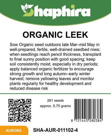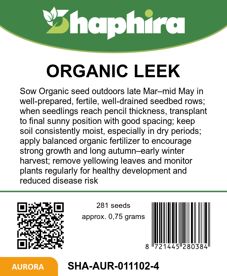 Sow Organic Leek Autumn Giants 2 seeds outdoors from late March to mid-May in well-prepared seedbeds with rows spaced adequately apart. When seedlings reach pencil thickness, transplant them to their final growing spots, maintaining a balanced distance to support healthy growth. This leek variety thrives when planted alongside companion plants such as carrots, cabbage, strawberries, and celery, promoting a natural garden ecosystem. Ensure soil is fertile and drains well to encourage strong development. Regularly monitor the seedlings during establishment to achieve a successful planting and prepare for a prolonged autumn harvest.