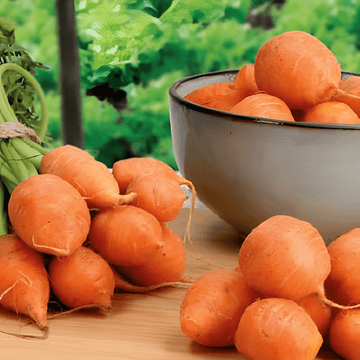 Juicy sweet round summer carrot thriving in heavy soil for early harvest.