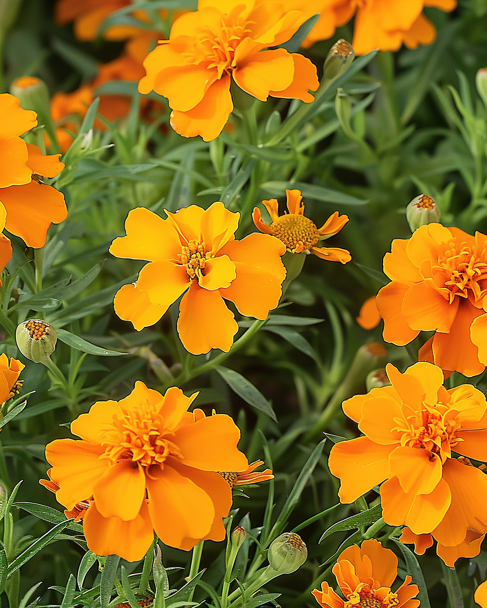 These compact Tagetes Orange Gem plants flourish best in sunny spots, where they receive plenty of light throughout the day. Regular watering is essential, but ensure the soil drains well to prevent waterlogging. Deadheading spent flowers encourages continuous blooming from midsummer to early autumn. Fertilize moderately during the growing season to support vibrant flower production. Their tidy growth habit makes them ideal for borders, rock gardens, or containers, adding a bright orange splash that enhances any garden design with minimal maintenance.